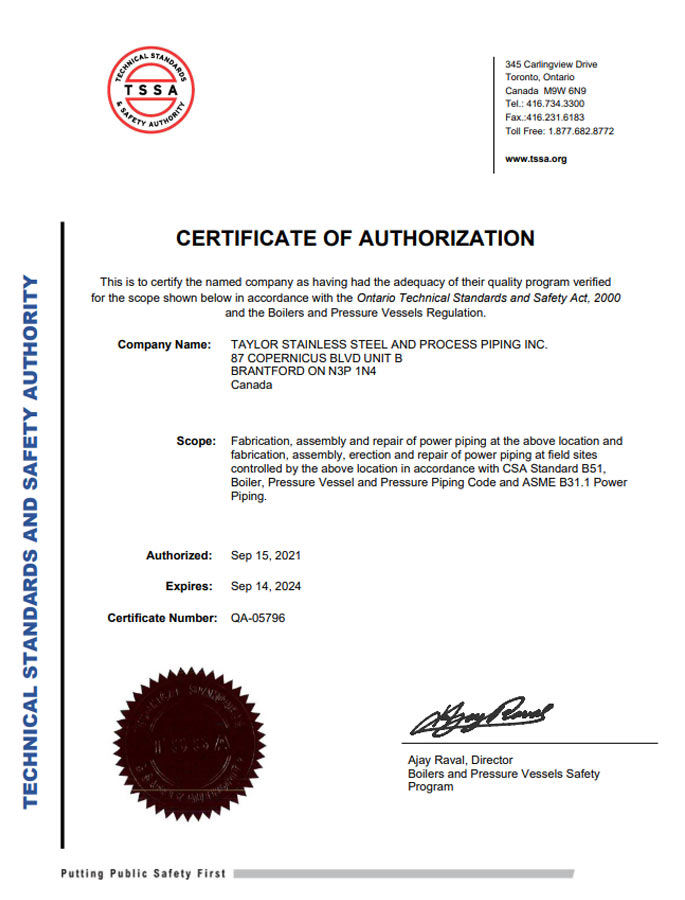 TSSA Certified For